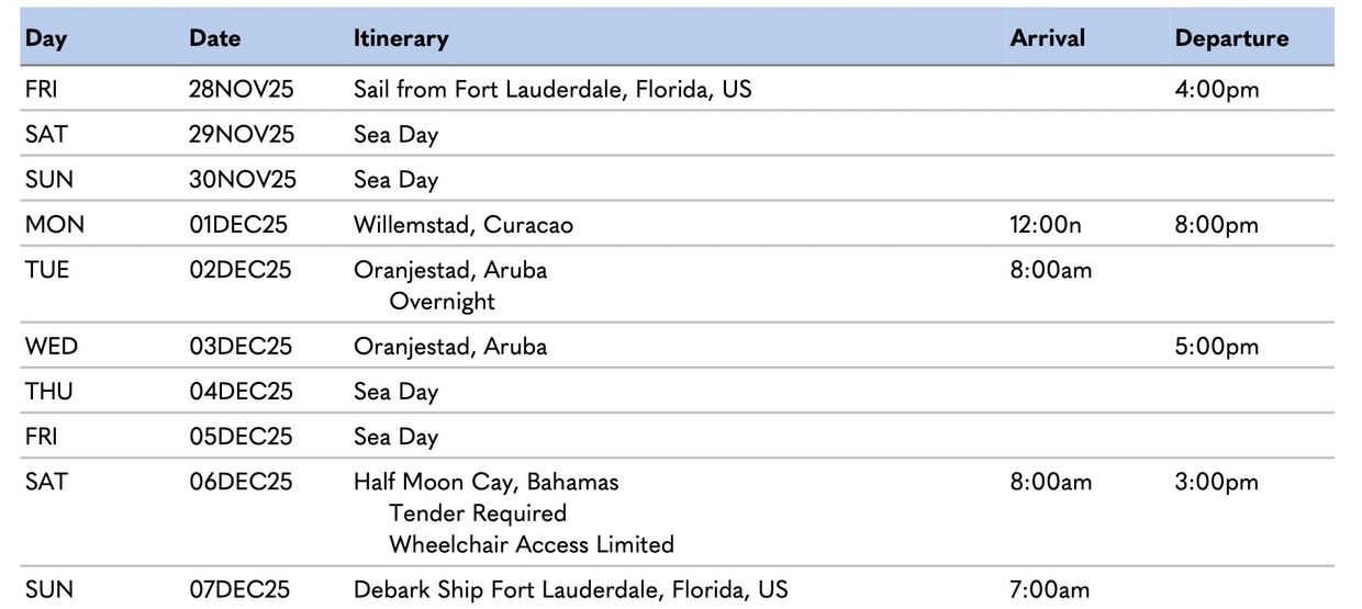 Island-hop the Caribbean aboard the Holland America MS Rotterdam on a roundtrip cruise from Ft. Lauderdale. Watch the sunset from the beach on a Willemstad overnight. Explore Aruba and RelaxAway, Half Moon Cay’s crystal lagoons.